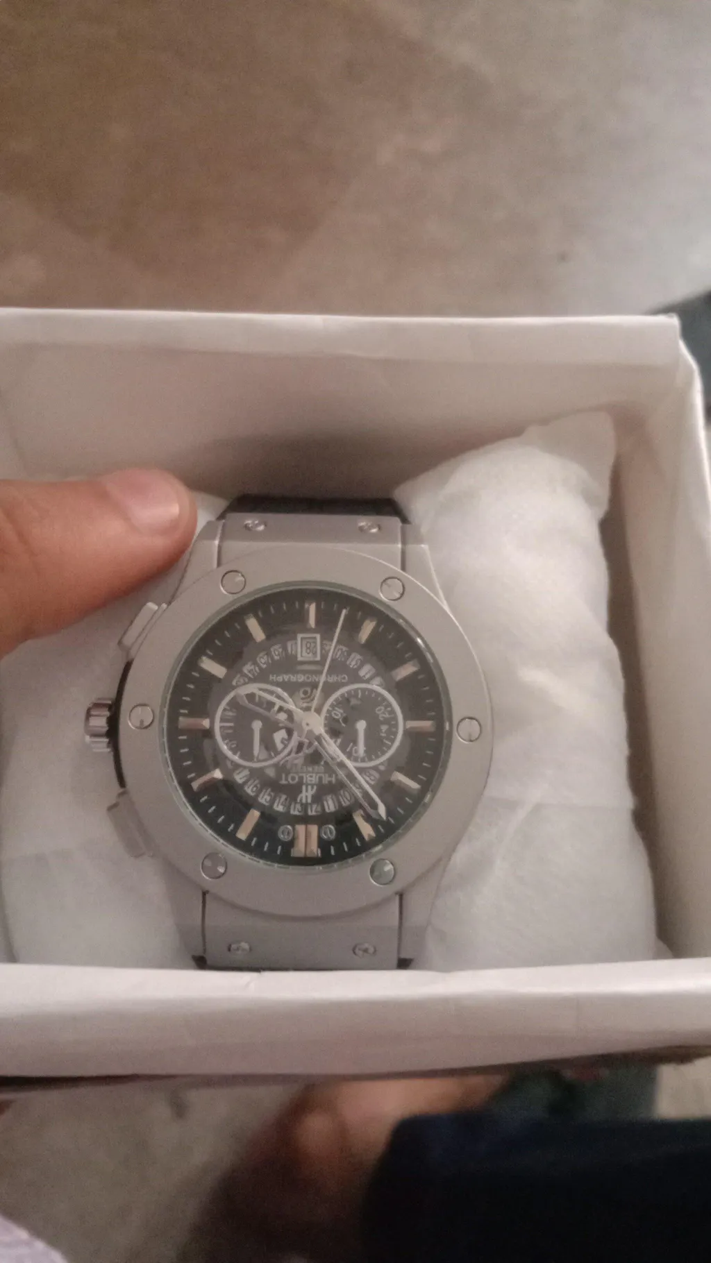 Add elegance and practicality to your collection with the Hublot Date Working Watch, featuring a premium lock strap and durable build. Designed for modern men who value both style and function, this watch is perfect for both casual and formal wear. Available in silver dial with black, gray, or camel straps, this watch is presented in a stylish box—making it ideal for personal use or gifting.